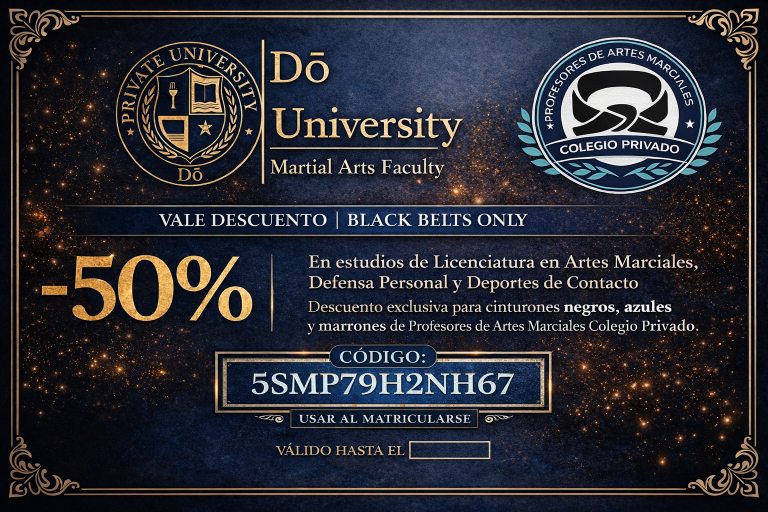 Entre estos beneficios destaca el acceso a programas formativos universitarios con condiciones preferentes, gracias a los acuerdos de colaboración con Dō University – Martial Arts Faculty. A través de estas iniciativas, los colegiados y afiliados pueden acceder a descuentos especiales en estudios superiores de artes marciales, defensa personal y deportes de combate, facilitando así la profesionalización y el reconocimiento académico dentro del sector.