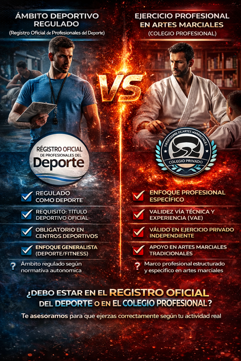En España, es importante diferenciar claramente entre el ámbito deportivo regulado y el ejercicio profesional independiente en artes marciales.
