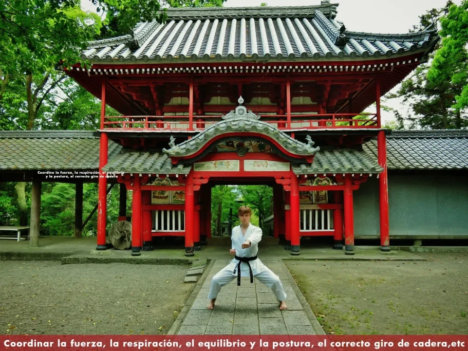 el empleo de golpes de puño y patadas, aunque no restringe su repertorio sólo a ellos. El"Karate-do"es un arte marcial en el que se coordina la fuerza, la respiración, el equilibrio y la postura, el correcto giro de cadera y la conexión conjunta de músculos y extremidades, trasladando gran parte del peso corporal y del centro de gravedad al impacto. Generalmente se busca derrotar al adversario mediante un solo impacto contundente en semejanza a la estocada o corte de una katana o sable japonés.