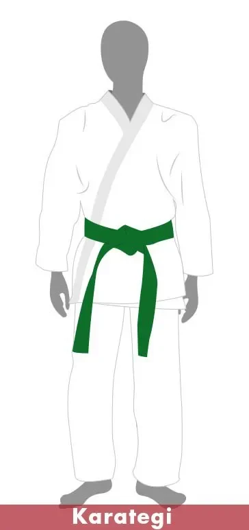 Este kimono, se compone de la chaqueta o uwagi, el zubon, que son los pantalones, y el cinturón, que determina el nivel de la persona, llamado Obi.