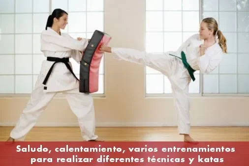 Continuando con calentamiento para preparar el cuerpo de los karatecas para la práctica como tal, de igual se realizan diferentes tipos de entrenamientos para desarrollar y fortalecer diferentes cualidades físicas que permitirán ejecutar ciertas habilidades al momento realizar diferentes técnicas y katas.