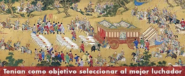 Se celebraba dos veces cada año, con el fin de seleccionar a los mejores luchadores. Al mismo tiempo, la habilidad y la tecnología de la espada de la forja así como ceremonia de espada, lograba un rápido desarrollo. En el período de Qin (221 aC - 207 aC) y Han (202 aC - 220 dC), lucha libre, esgrima, baile y artes marciales se hicieron muy populares.
