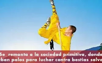 Se remonta a la sociedad primitiva. Entonces la gente usaba palos para luchar contra las bestias salvajes, practica que con los años se convirtió en parte del entrenamiento del Kung Fu.