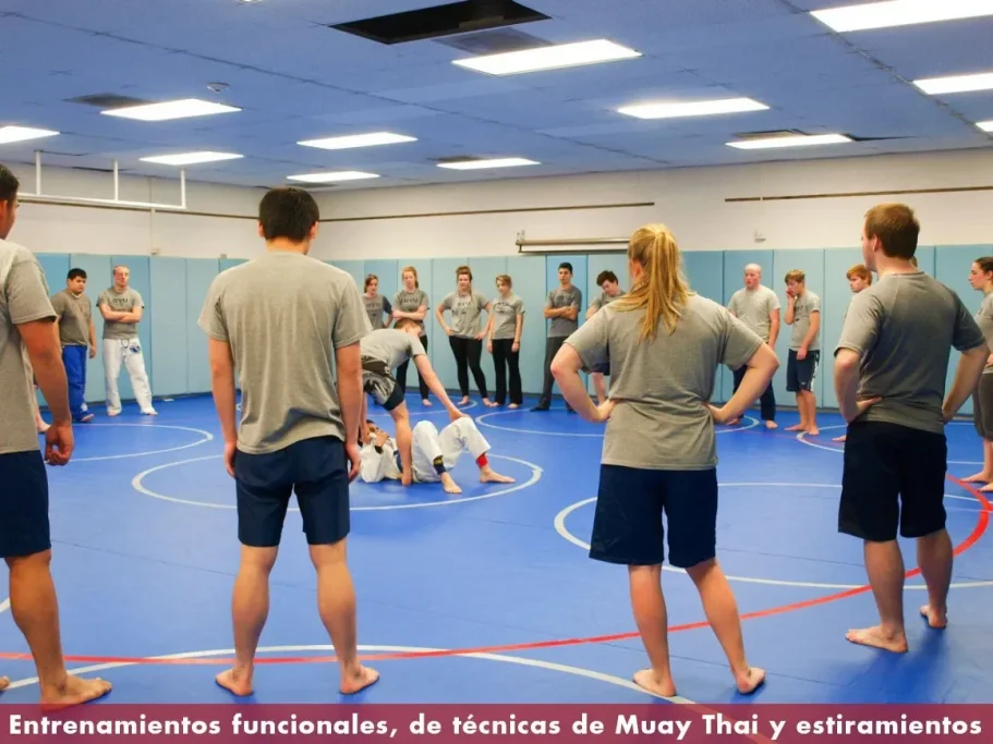 Continuando con el entrenamiento de técnicas de muay thai, como técnicas de golpes con pierna, derribos y lanzamientos, patadas y patadas al estómago, técnicas de llaves en articulaciones, entre otros; para finalizar se realizan estiramientos que ayudaran a contrarrestar la fatiga que se adquiere durante la práctica.