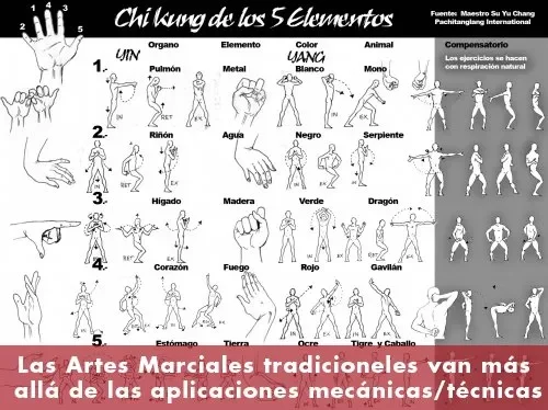 Algunas artes marciales, y en particular las artes marciales originadas en China, Japón y Corea, van más allá de las aplicaciones mecánicas.regulación del sistema psicofísico (chi kung (qigong)), terapéutica (acupuntura, digitopuntura, herboristería) y otras áreas relacionadas con la medicina china tradicional. Esto es una extensión natural del arte marcial debido a que, a un nivel avanzado, las técnicas sacan provecho de un detallado conocimiento del funcionamiento energético del adversario con objeto de incrementar la eficiencia de las mismas