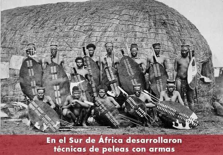 del sur del continente africano, desarrollaron tácticas y técnicas para la pelea con armas como el garrote, la lanza y el escudo. El guerrero Shaka Zulu (1787-1828) fue quien revolucionó las técnicas de guerra en masa con la adición del assagai (lanza para apuñalar, con un mango más corto), así como la manera en que entrenó a su ejército y las tácticas utilizadas contra otras tribus africanas y posteriormente contra los ingleses
