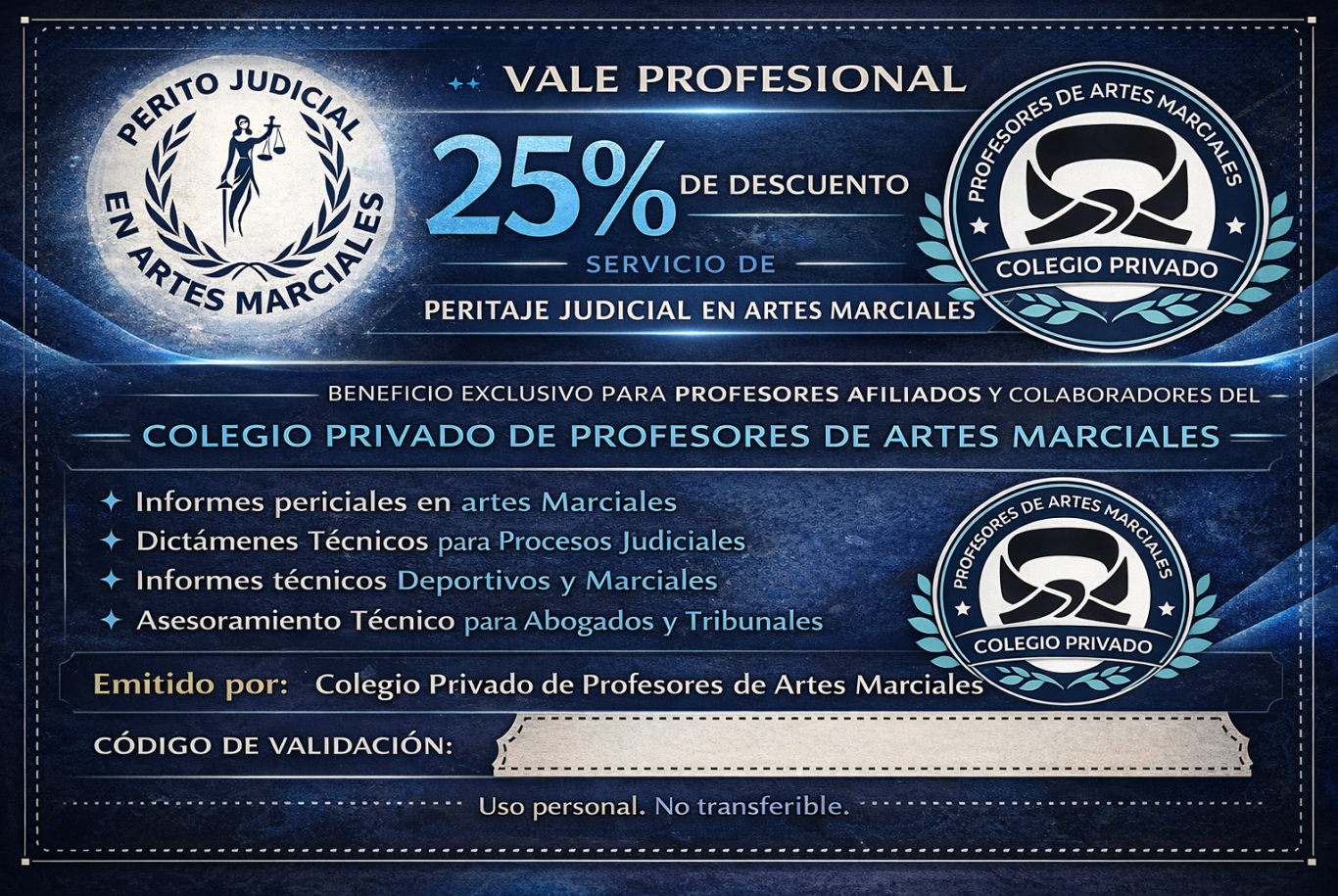 Con este vale descuento podrá tener un descuento en peritajes de artes marciales